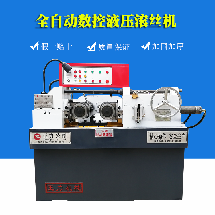 邢臺(tái)正力機(jī)械制造有限公司是國內(nèi)高端平價(jià)滾絲機(jī)專業(yè)化制造企業(yè)。 本公司是集研制、開發(fā) 、生產(chǎn)與銷售為一體的大型機(jī)械廠家,現(xiàn)主要產(chǎn)品有:滾絲機(jī),螺紋機(jī)床,縮經(jīng)機(jī),拔料機(jī),冷軋壓圓機(jī),雙組拉絲機(jī)等各種機(jī)械。地處燕趙大地南部邢臺(tái)市,是省級(jí)重合同、守信用、產(chǎn)品質(zhì)量穩(wěn)定型企業(yè),河北省消費(fèi)者協(xié)會(huì)信的過產(chǎn)品,產(chǎn)品暢銷全國各地,深受用戶的好評(píng)。